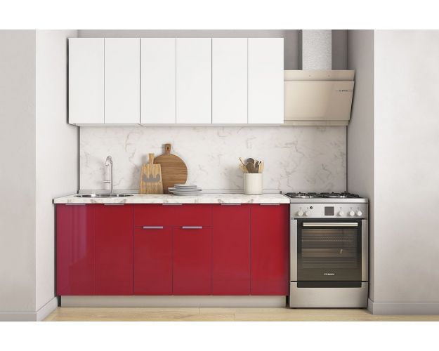 Кухонный гарнитур "Бостон 1.8" белый/белый/красный глянец